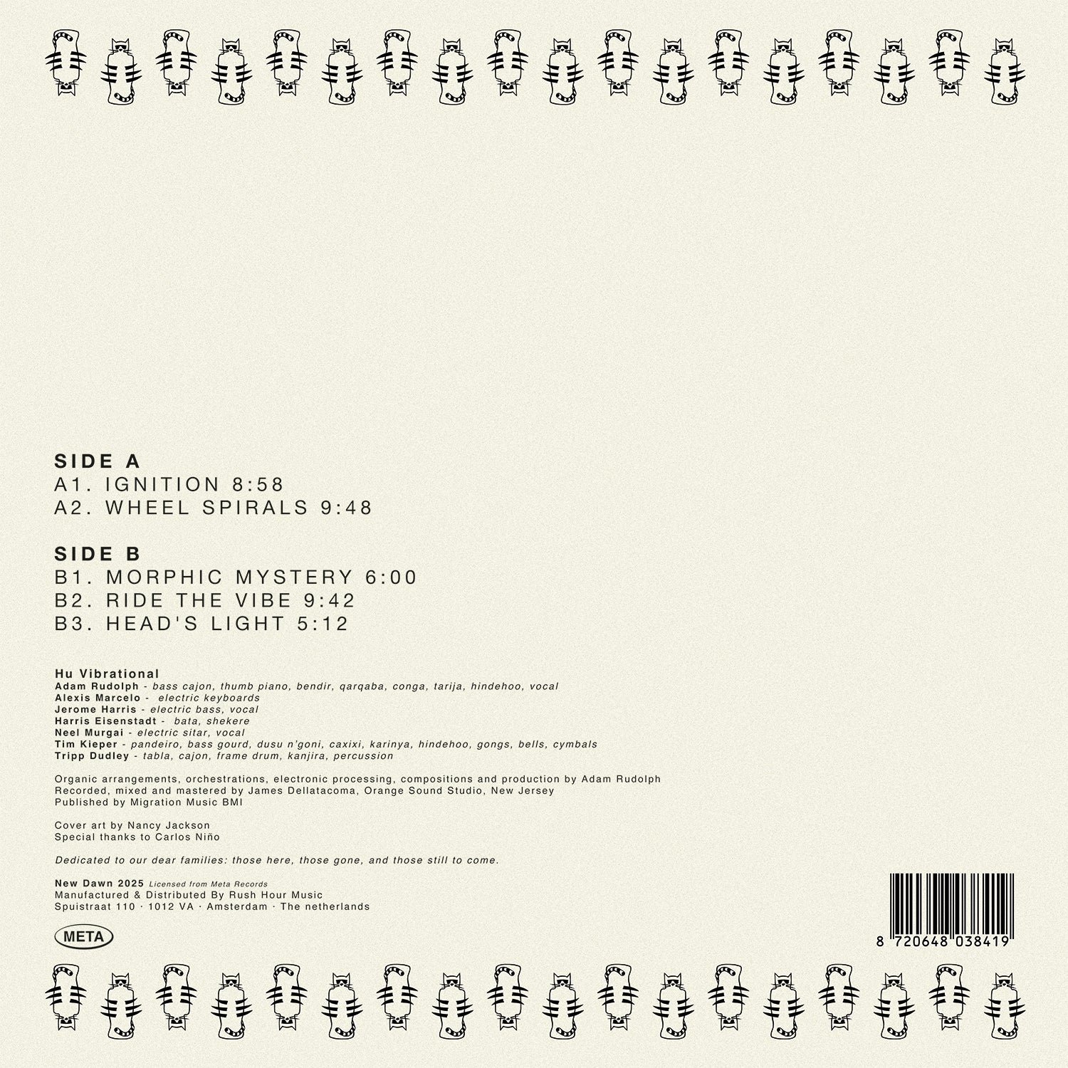 The ensemble of Vibe Ride—Alexis Marcelo, Jerome Harris, Harris Eisenstadt, Neel Murgai, Tim Kieper, and Tripp Dudley—brings exceptional creativity and skill to the project. While grounded in the sonic languages of today, their performance channels an ancient vibrational lineage, connecting with ancestral sound makers who were attuned to the rhythms of the sun, moon, stars, and seasons. Human beings have always been deeply responsive to natural cycles.
